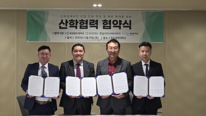 써팩 주식회사(대표 임남희)는 20일 목포중앙고등학교, 목포과학대학교, 한국수력원자력 주식회사와 함께 ”신재생에너지 산업 인재 양성 및 채용 확대를 위한 산학협력 협약”을 체결했다.